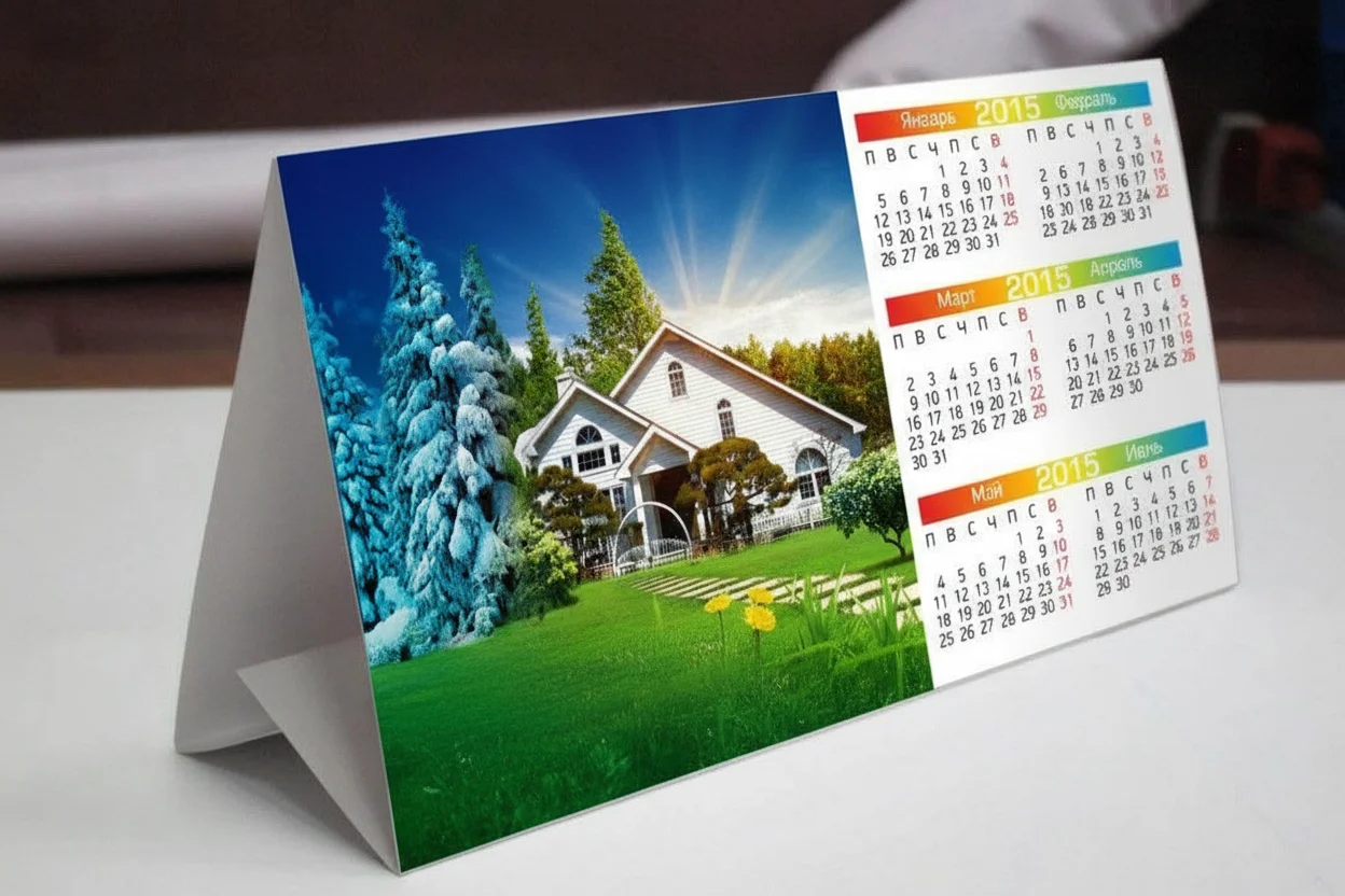 Данный вид календаря представляет собой полиграфическое изделие, отличающееся функциональностью, практичностью и удобством в использовании. С его помощью можно спланировать свое время, назначать совещания. Также, настольный календарь «Домик» является носителем рекламы вашего бизнеса.